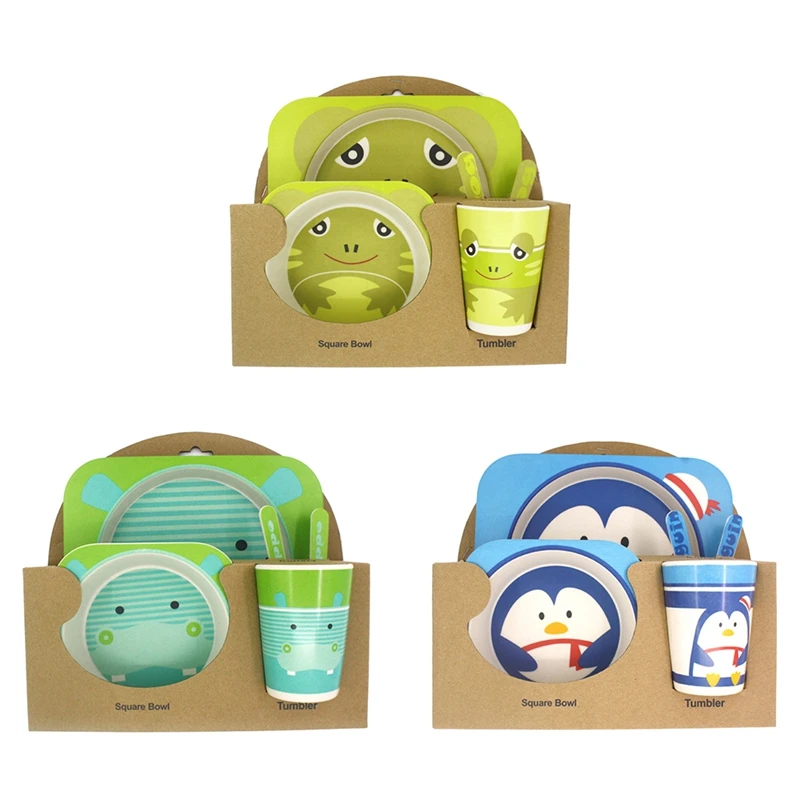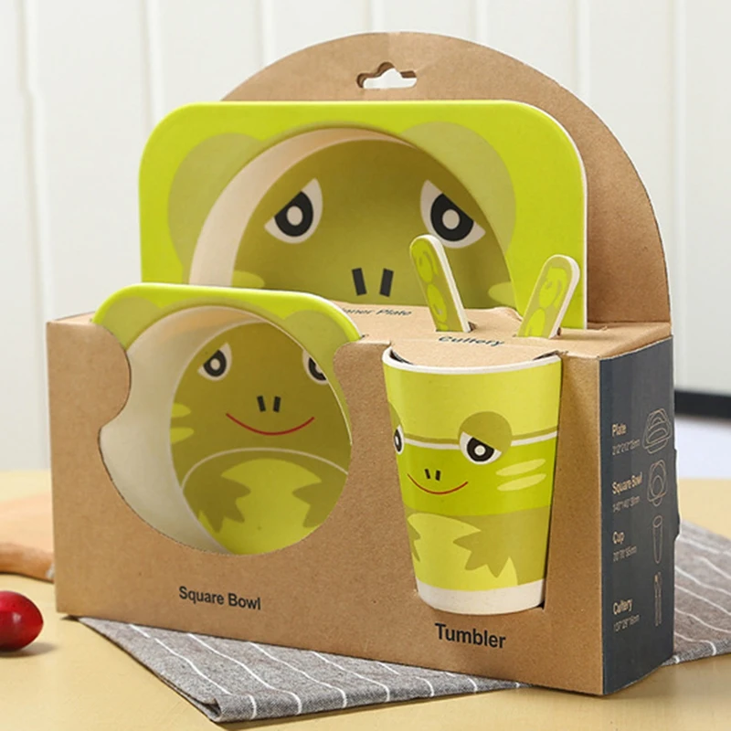 IALJ Top 5 Pieces / Set Of Dish Tableware Feeding Set Bamboo Fiber Baby Cute Children Container Cut